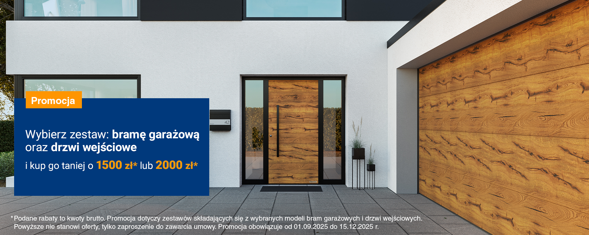 Jesienna promocja firmy Hörmann nadal trwa! Kup bramę garażową i drzwi zewnętrzne w zestawie, zyskaj 1500 zł lub nawet 2000 zł oraz weź udział w KONKURSIE